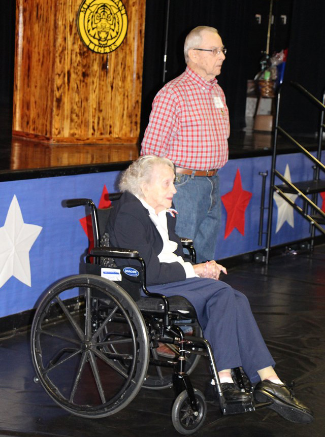 Military widows, active military members, military mothers and recipients of military awards for Valor and Purple Hearts were honored. Special recognition was given to two members of the audience who had served in World War II.