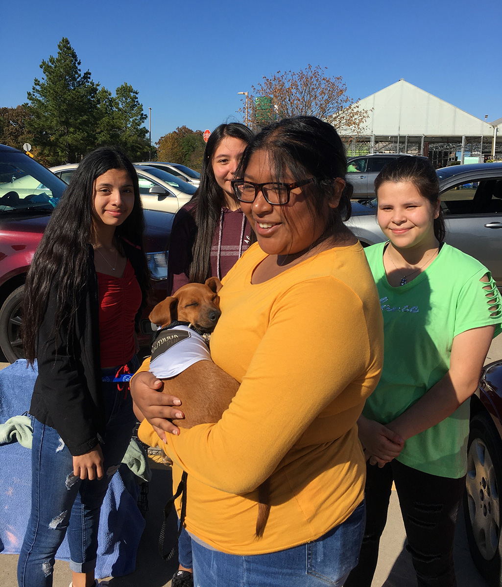 3— from left, Jessica Mejia, Giselle Arrellano, Maria Carrillo, and Daisy Urista hold a sleeping pup