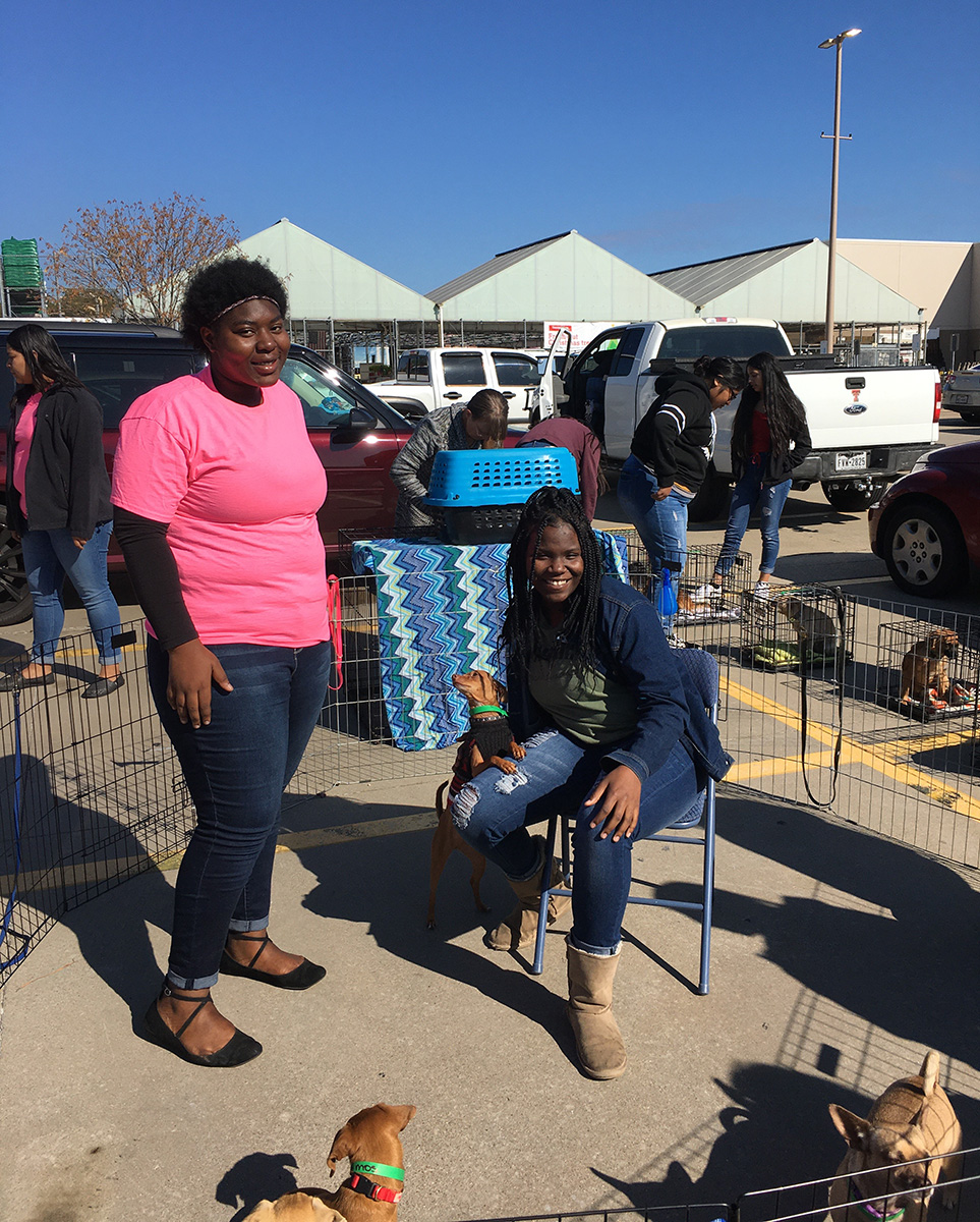 8—from left Khia Shaw and Mahogany Grundy take their turn with the animals available for adoption