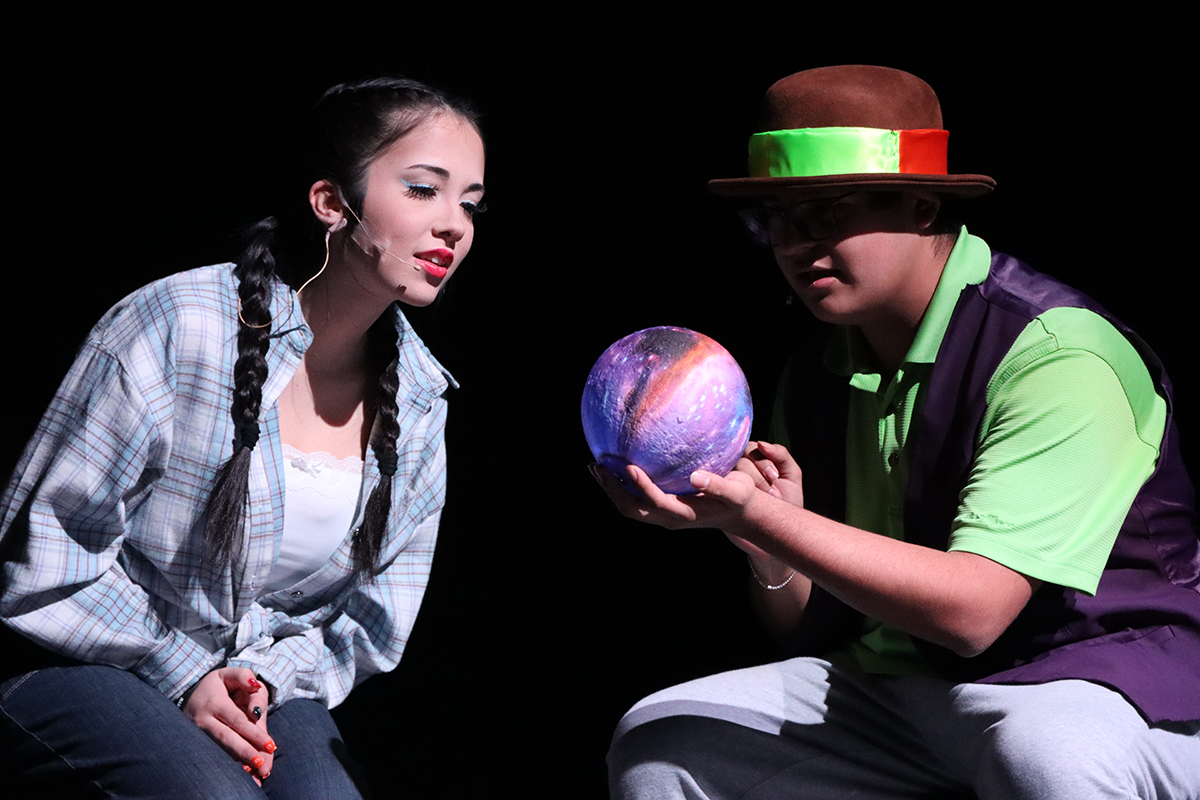 3: Dorothy (Madison Zepeda) gazes into the Professor’s a.k.a. The Wizard (Kevin Mendoza) crystal ball