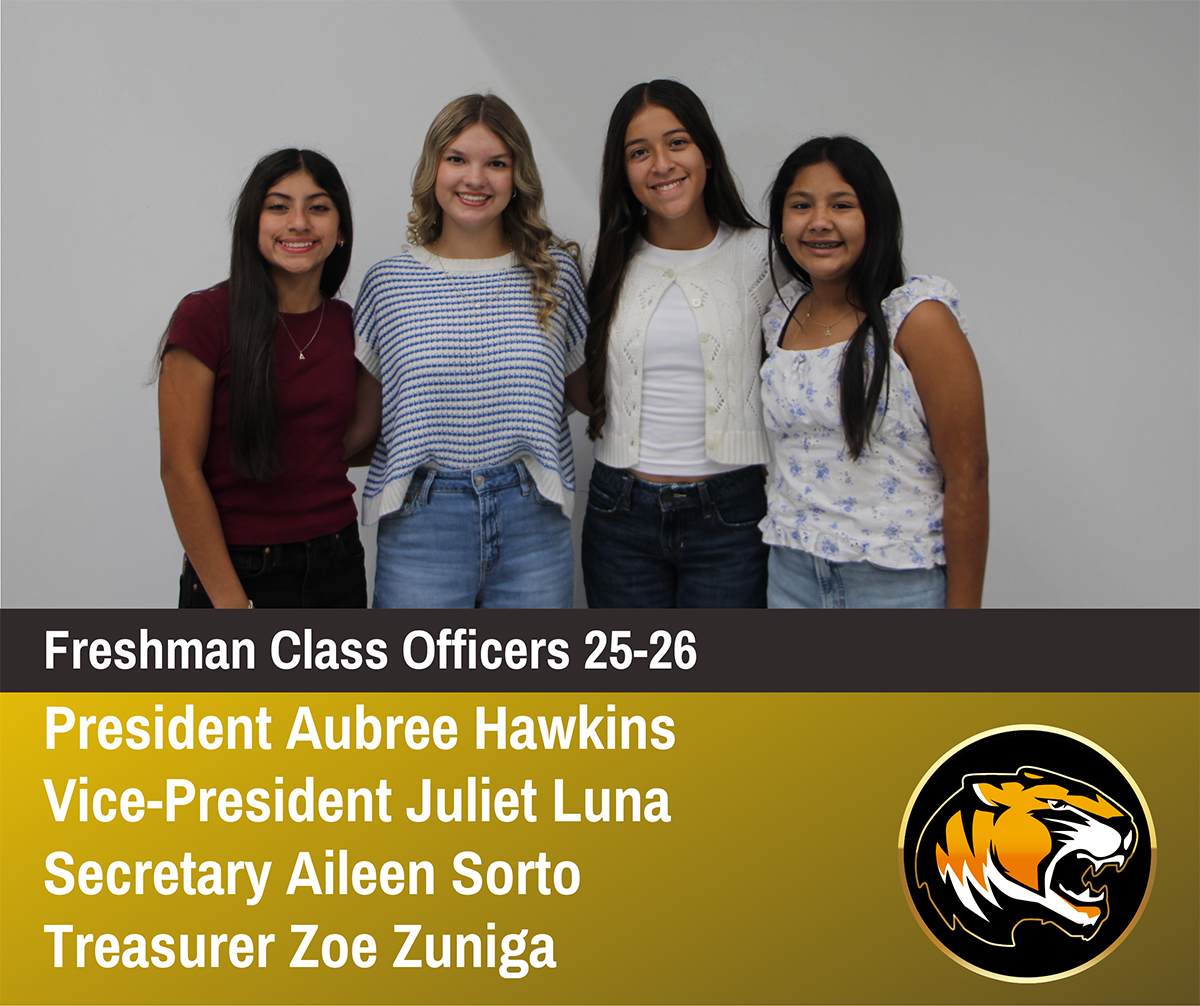 And Freshman class officers include President Aubree Hawkins, Vice President Juliet Luna, Secretary Aileen Sorto, and Treasurer Zoe Zuniga.