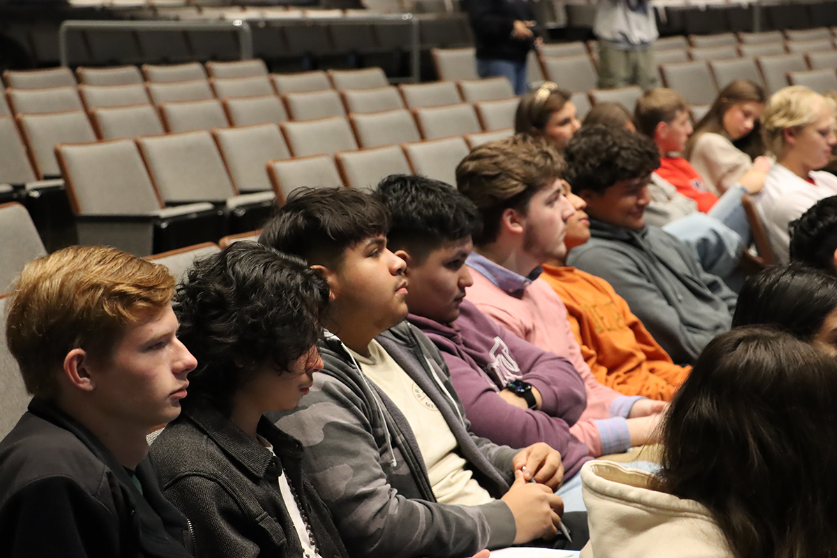 National Honor Society (NHS) members from four area schools came together for the second annual Mount Pleasant NHS Leadership Conference on November 2 at Mount Pleasant High School. A total of 200 students plus advisors representing Mount Pleasant, Mount Vernon, Paul Pewitt, and Cumby were in attendance. The morning was filled with area community leaders speaking on the NHS pillars of character, leadership, scholarship, and service, as well as financial responsibility, civic responsibility, and lifelong learning.