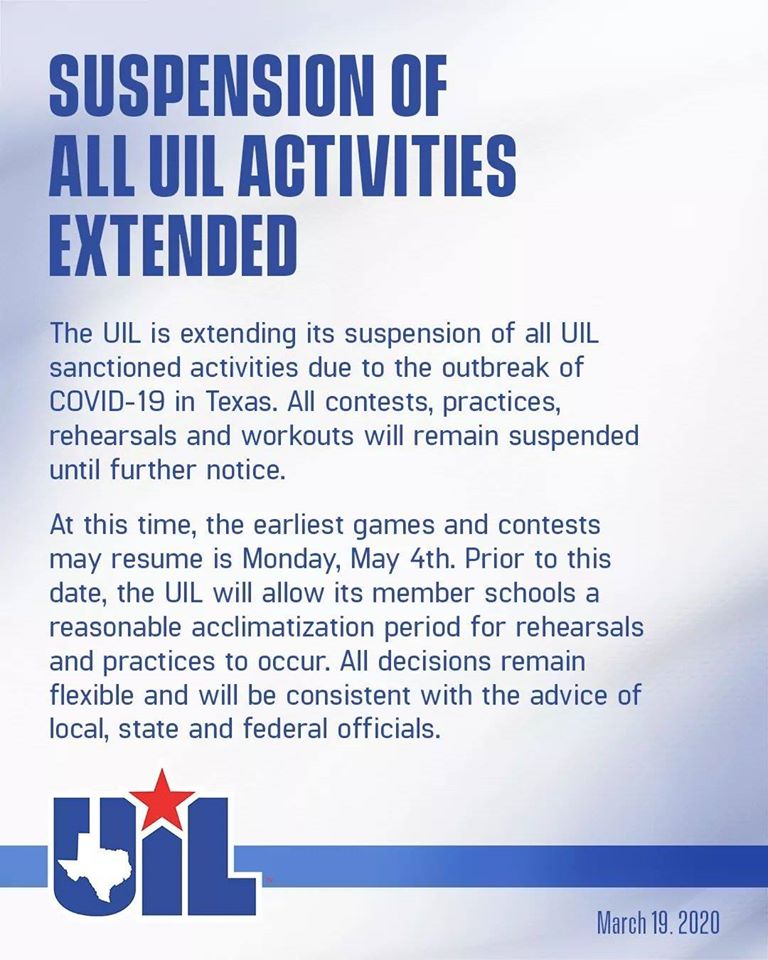 Suspension of All UIL Activities Extended