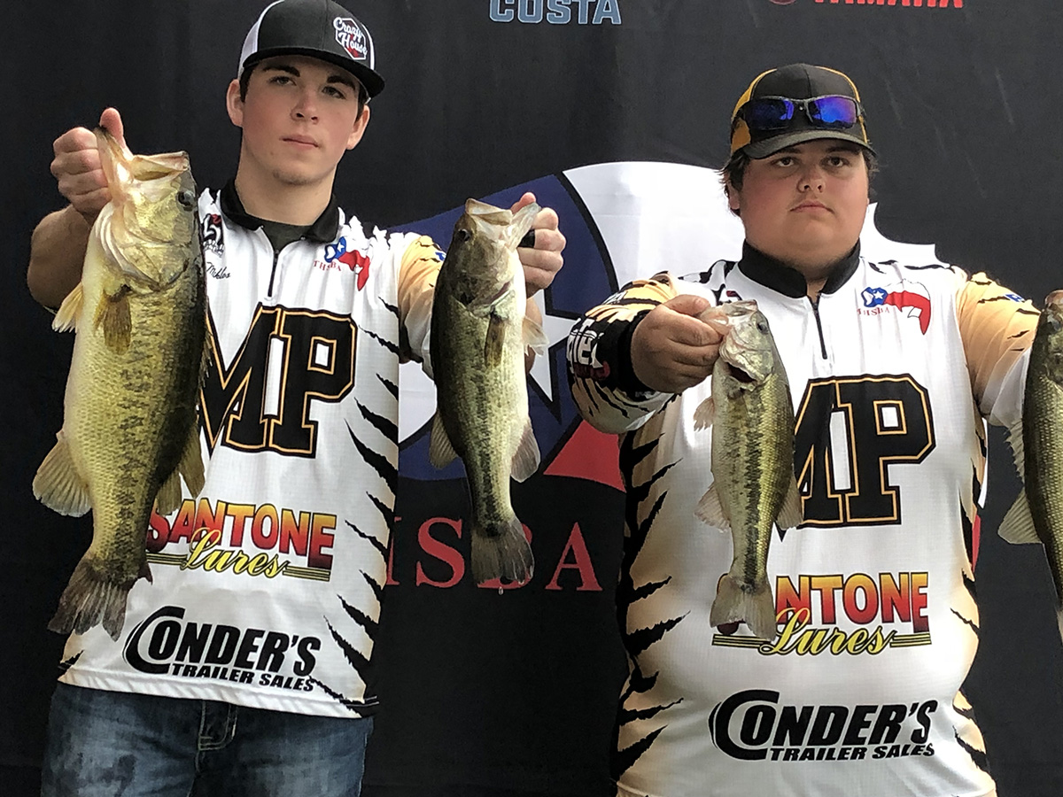 The Mount Pleasant High School Bass Fishing Team had two teams place at the Regional Bass Tournament on Lake Tyler April 21. The team of Rance White and Blake Denson placed 11th with a total weight of 13.27 pounds caught. Zeth Whittington and Tyler Miklos placed 30th with a total weight of 9.35 caught. Both teams are advancing to State on May 19-20 on Lake Sam Rayburn. Go Tiger Fishing!