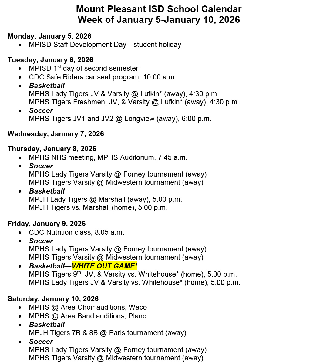 Check out the spirit dress for HOMECOMING Week, October 20-24! (Thurs. & Fri. switched due to date change for football game) Monday - Meme Day Tuesday - Twin Day Wednesday - Western Wear Thursday - Black [...]