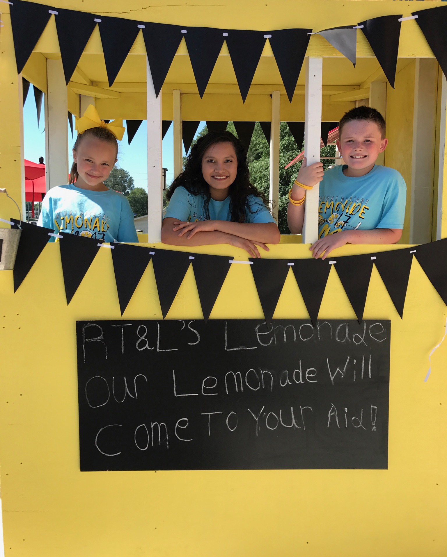 Annie Sims students Tanner Marshall and Lizi Buck along with their high school mentor Rosie Gonzalez made a donation to the Rainbow Room using a portion of their proceeds from their Lemonade Day business.