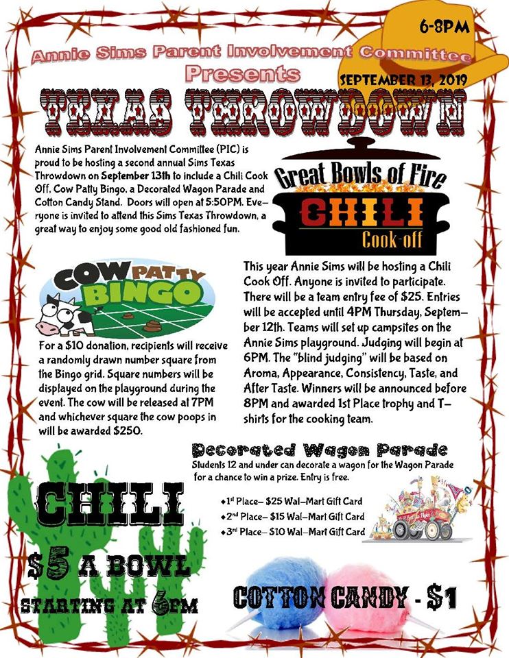 We have many opportunities for families and students to visit the school and attend several functions. We invite our community members to join us at our events throughout the year. Sims offers fun functions that include Sims Splash Bash, Grandparents’/Heroes’ lunch, Fall Fiesta, our annual Book Fair, Grade level musicals, holiday luncheons, Turtle Races, Talent Shows and Awards Ceremonies.
